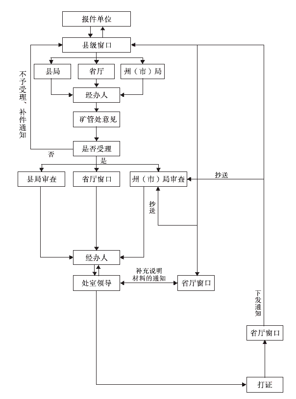 備注:劃定礦區(qū)范圍預(yù)留期過期的,探轉(zhuǎn)采探礦權(quán)存在的,采礦權(quán)申請擴(kuò)大范圍的,礦區(qū)范圍不予預(yù)留,原申請人可重新申請;探礦權(quán)已滅失和以招、拍、掛和協(xié)議方式直接出讓采礦權(quán)劃定礦區(qū)范圍及資源整合重新劃定礦區(qū)范圍的,申請人說明原因、出具項(xiàng)目所在地(縣、市、區(qū))和州(市)國土資源局有無持劃定礦區(qū)范圍采礦和是否同意延期的意見到省廳辦理延期手續(xù),再次出現(xiàn)過期的,礦區(qū)范圍不予預(yù)留。